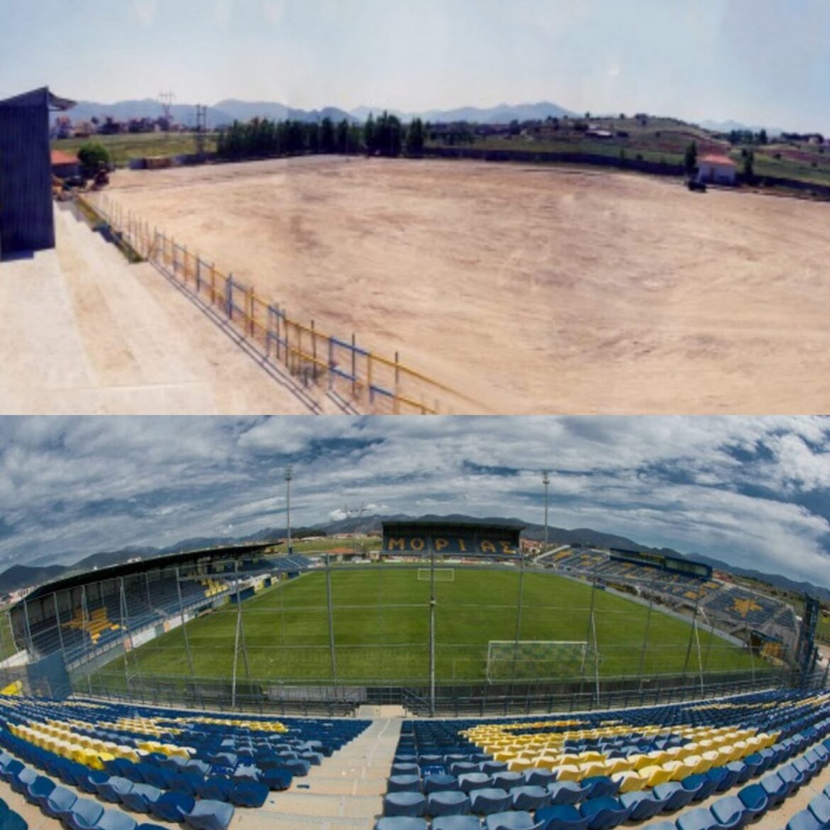 Η κατάσταση του γηπέδου το 2002 δεν διέφερε ιδιαίτερα από αυτήν ενός κλασικού γηπέδου τοπικού της εποχής. Χωμάτινο με μια κερκίδα εκατό θέσεων. Το πρώτο βήμα ήταν η τοποθέτηση χλοοτάπητα και το επόμενο η ανέγερση νέας κερκίδας, ώστε να μπορεί να φιλοξενηθεί μεγαλύτερος αριθμός φιλάθλων.